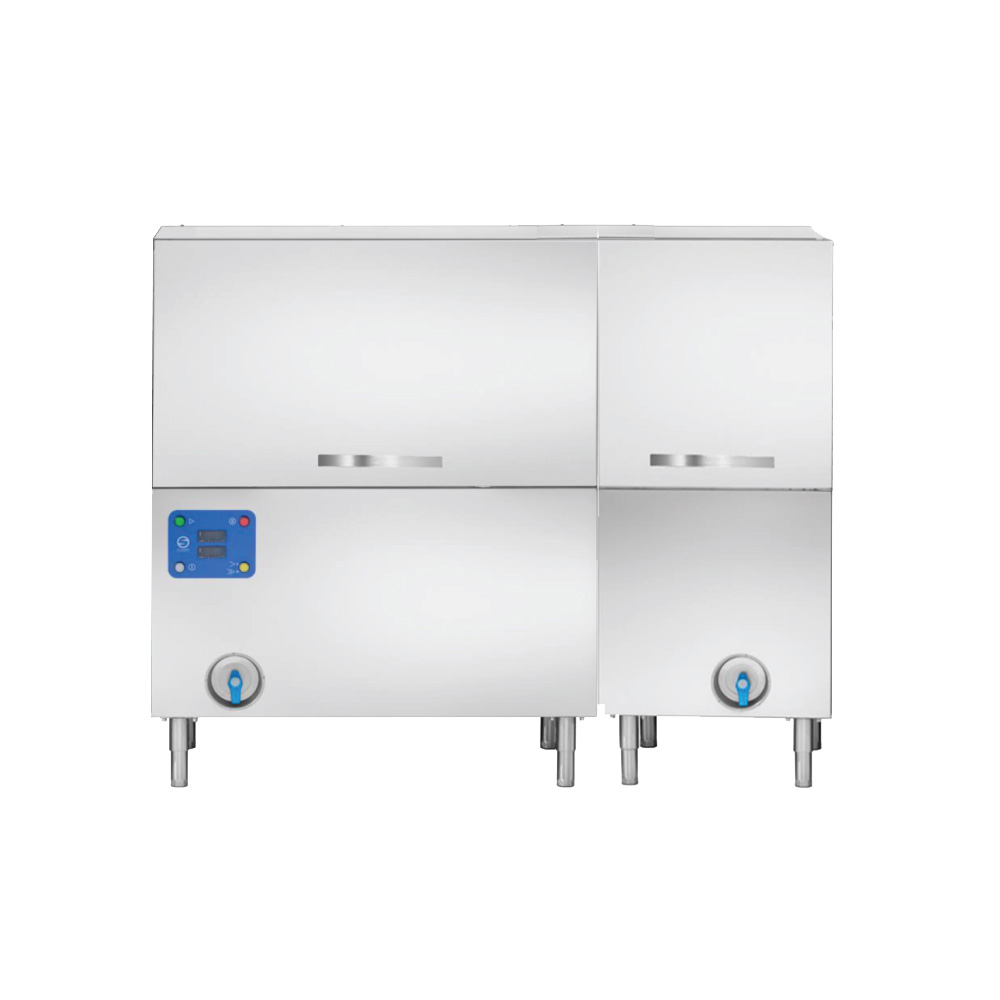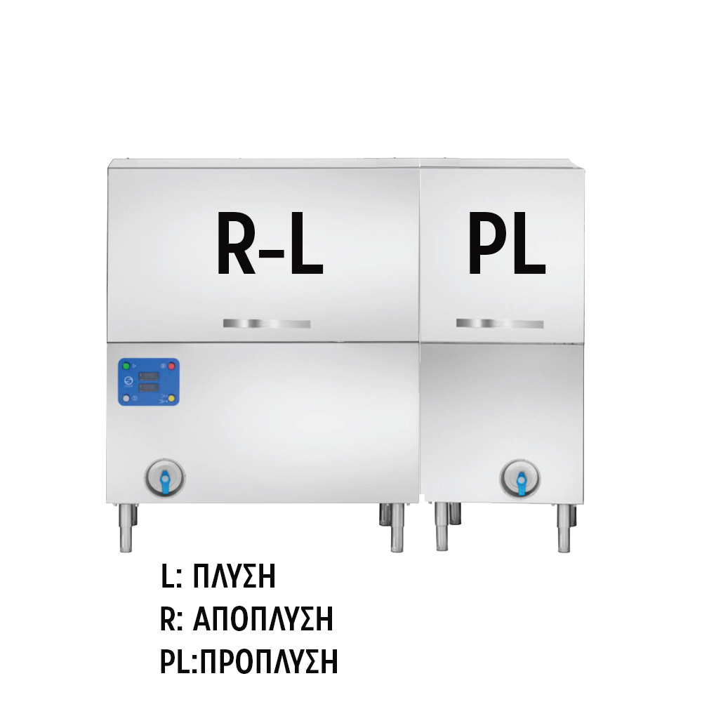 Διαστάσεις 1750x805x1435(h)mm Διαστάσεις καλαθιών 500 x 500 mm Παραγωγή καλαθιών / hour 99-149 Ισχύς 20 kWatt, 400V / 3N / 50Hz Αντίσταση κάδου 9 kWatt Αντλία πλύσης 1,1 kWatt Αντλία απόπλυσης 0,18 kwatt Αντλία πρόπλυσης 0,55 kWatt Xωρητικότητα κάδου πλύσης 135 lt Χωρητικότητα boiler 9 lt Φάσεις PL-L- R (Πρόπλυση-Πλύση - Απόπλυση) Πίεση νερού στην είσοδο 200 - 400 kPa Σκληρότητα νερού min 7 - max 12ºF Διπλά τοιχώματα Μονώμενα boiler Ενδείκνυται η τροφοδοσία με νερό θερμοκρασίας έως 55ºC