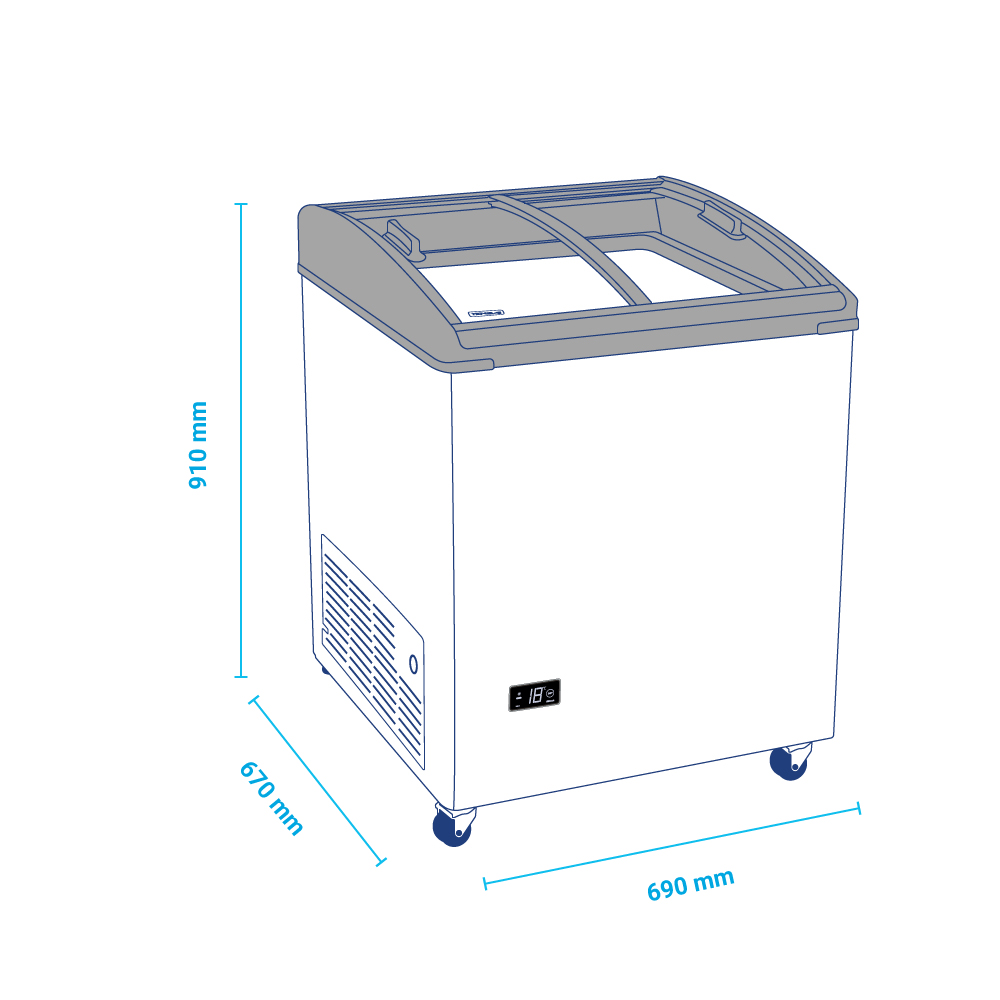 Εξωτερικές διαστάσεις 690x670x910(h)mm Χωρητικότητα 170 lt Θερμοκρασία -22ºC / -9ºC Ισχύς 115 Watt / 220-240V / 50Hz Ψύξη Στατική Απόψυξη Χειροκίνητη Ψυκτικό υγρό R600a Κλιματική κλάση 4 (30°C & 55%RH) Βάρος 38 Κg Προδιαγραφές Tropical 4 Ρόδες πολλαπλής κατεύθυνσης