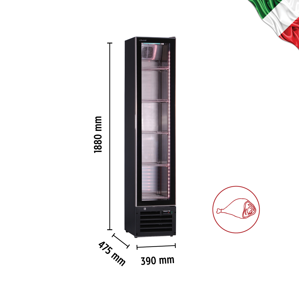 Εξωτερικές διαστάσεις 390x475x1880(h)mm Εσωτερικές διαστάσεις 310x365x1498(h)mm Χωρητικότητα 164 lt Θερμοκρασία +1ºC / +4οC Ισχύς 180Watt / 220-240 V / 50Hz Ψύξη Βεβιασμένη Απόψυξη Αυτόματη Ψυκτικό υγρό R600a Ράφια 5 (294x355mm) Φωτισμός LED Βάρος 55 kg Ηλεκτρονικό/ς θερμοστάτης/θερμόμετρο Οθόνη αφής (touch screen) 4 ποδαράκια