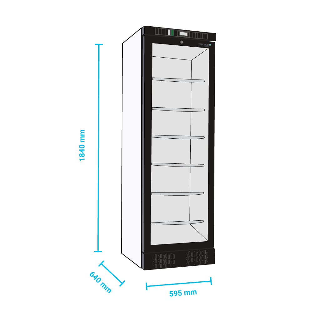 Εξωτερικές διαστάσεις 595x640x1840(h)mm Εσωτερικές διαστάσεις 470x440x1545(h)mm Χωρητικότητα 300 lt Θερμοκρασία -24ºC / -14ºC Ισχύς 570Watt / 220-240V / 50hz Ψύξη Στατική Απόψυξη Χειροκίνητη Ψυκτικό υγρό R290 Ράφια 6 ψυχόμενα (470x413mm) Φωτισμός LED Κλιματική κλάση 4 (30ºC & 55%RH) Καθαρό Βάρος 95 Kg Μηχανικός θερμοστάτης - θερμόμετρο Κλειδαριά 2 ρυθμιζόμενα ποδαράκια & 2 ροδάκια