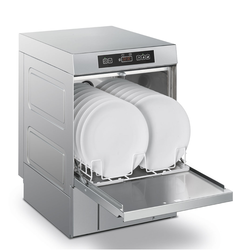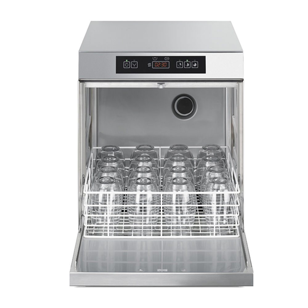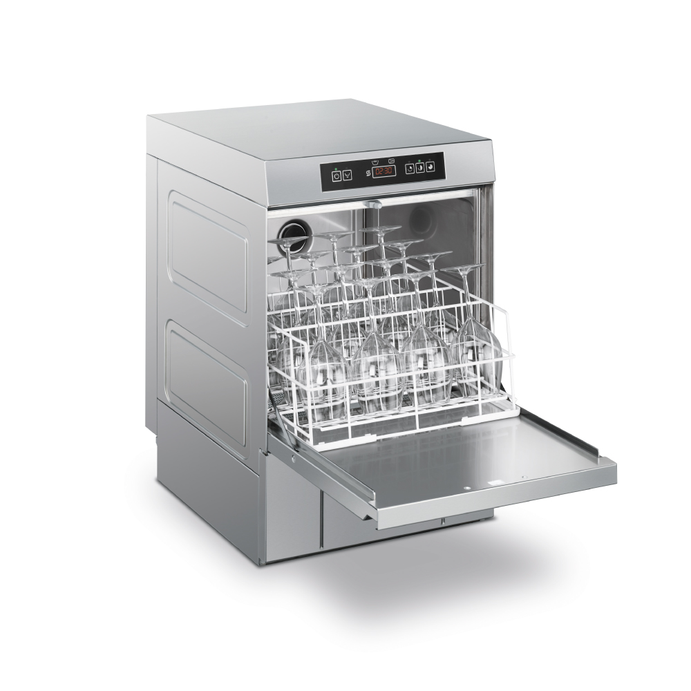 Διαστάσεις 440x530x670(h)mm Άνοιγμα πόρτας 330 mm Καλάθι 400x400 mm Προγράμματα 90 / 150 / 240 sec Συνολική Ισχύς 3 Kw / 230V / 50Hz Αντίσταση κάδου 2000 Watt Αντίσταση Boiler 2700 Watt Αντλία πλύσης 0,29 KWatt Συμπεριλαμβάνονται: 1 καλάθι γενικής χρήσης & 1 μονή θήκη για μαχαιροπήρουνα.