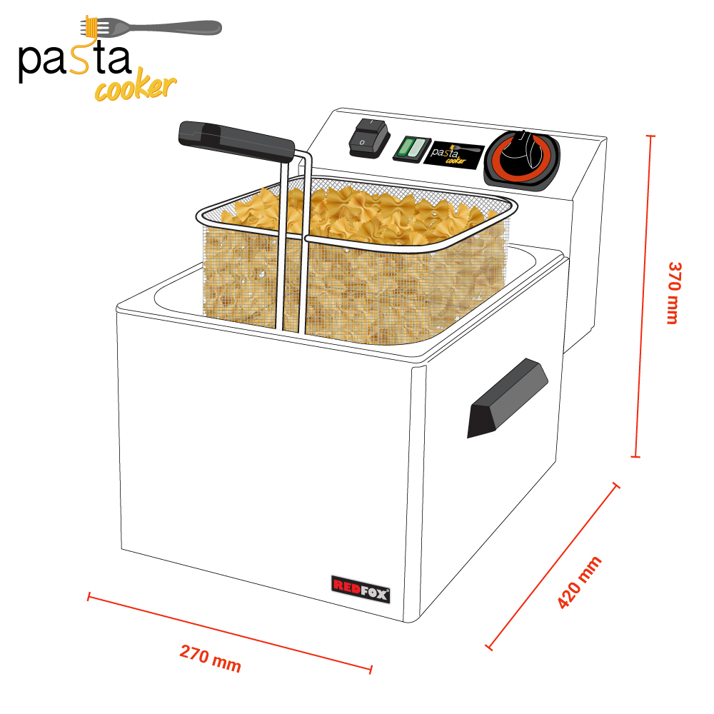 Διαστάσεις 270x420x370(h)mm Θερμοκρασία 30 / 110οC Αντίσταση 3,4 KWatt, 230V / 50Hz Διαστάσεις καλαθιού 210x235x100mm Κωδικός προϊόντος 102 600 100 Αντίσταση ειδική για νερό Περιλαμβάνει καλάθι και καπάκι.