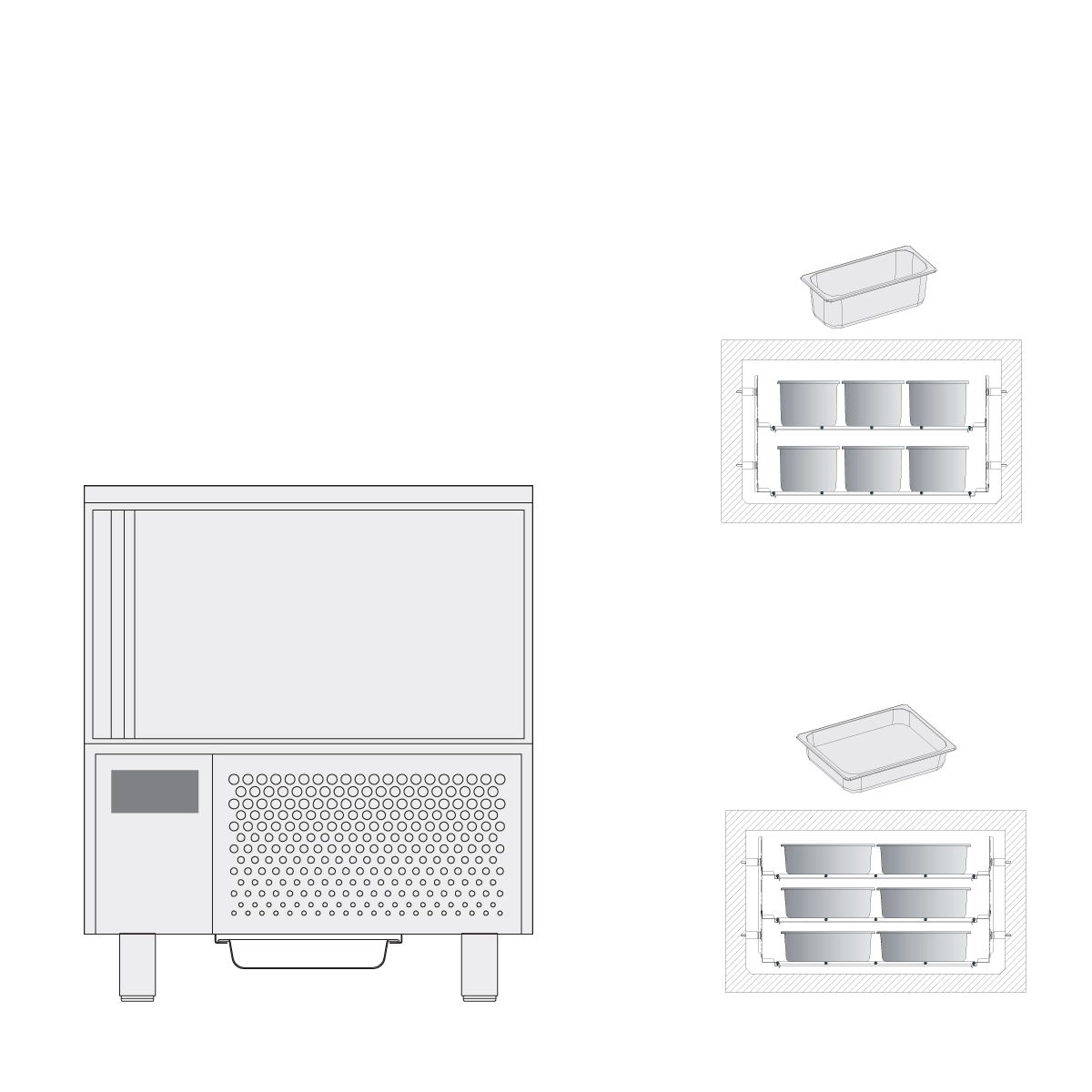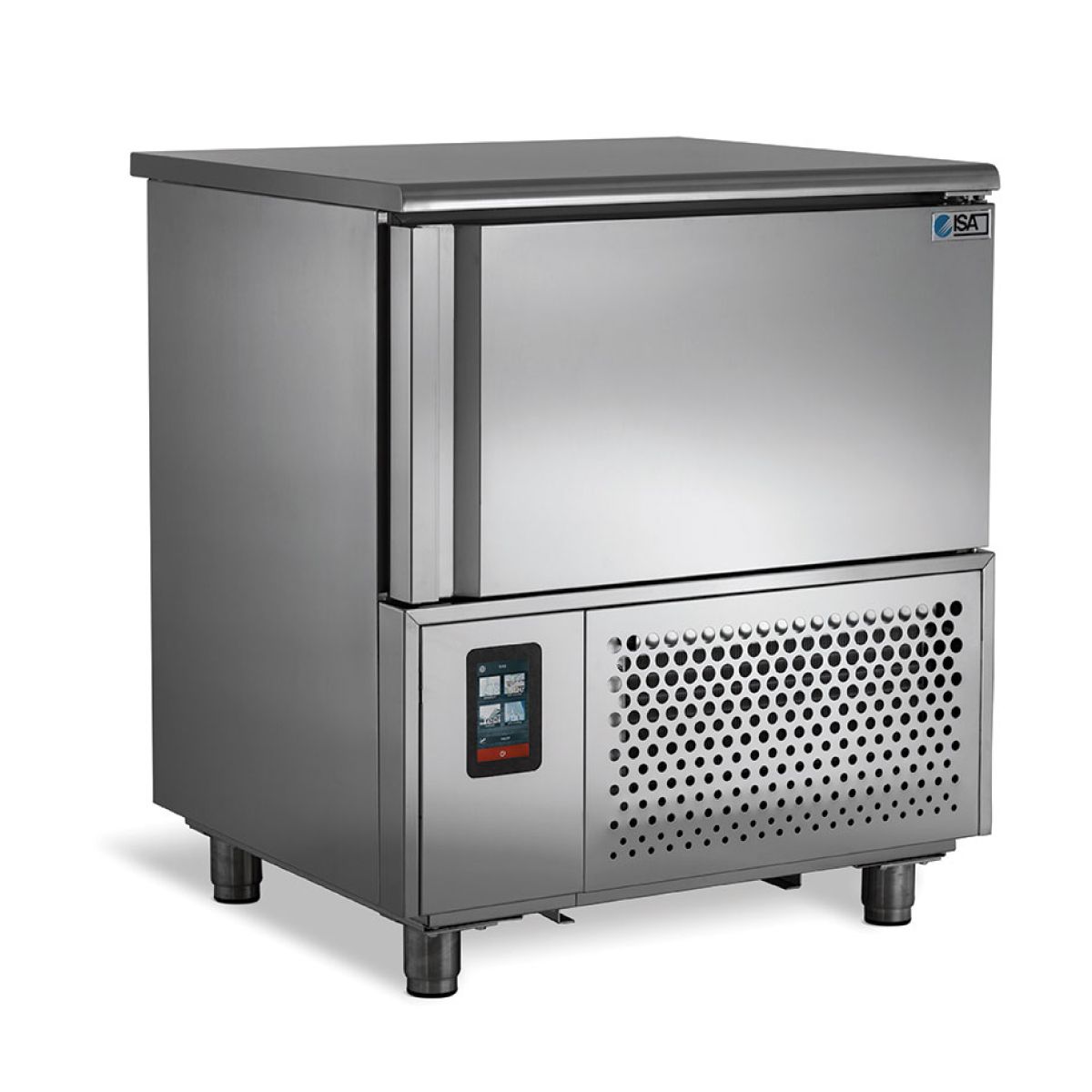 Διαστάσεις 800x700x920(h)mm Χωρητικότητα 5 GN 1/1 ή 5 ταψιά 400x600 ή 8 λεκανάκια παγωτού (5lt) Ικανότητα Ψύξης 18 kg σε 90' (+90oC σε +3oC) Ικανότητα Κατάψυξης 12 kg σε 240' (+90oC έως -18oC) Ψύξη Βεβιασμένη Απόψυξη Αυτόματη (με Hot Gas) Ισχύς 1000 Watt, 230V / 50Hz Ψυκτικό υγρό R452a Κλιματική κλάση 4 (30°C & 55%RH) Απόσταση λαμαρίνων 65mm Τα λεκανάκια παγωτού, τα GN και οι λαμαρίνες δε συμπεριλαμβάνονται